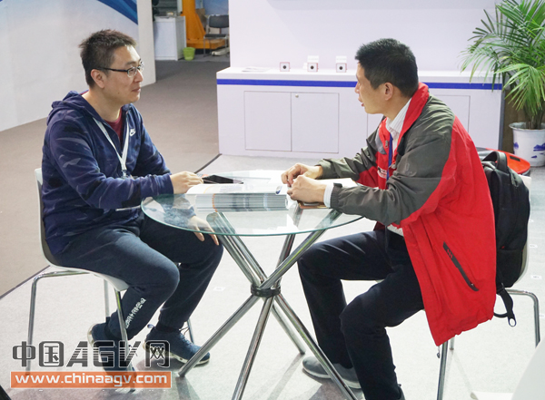 盈科视控总经理孙兴国(左)接受中国AGV网记者采访