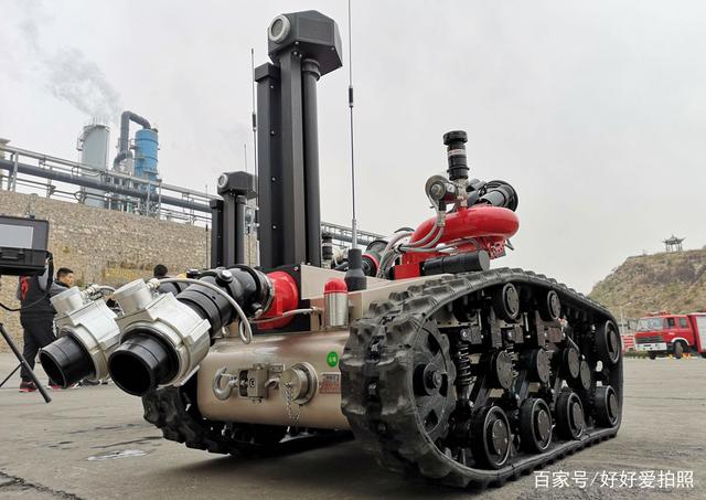 防爆消防灭火侦查机器人进行实战演习,它上前战斗,消防员在它不远处遥控指挥就可以开展消防救援了。