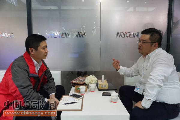 海康机器人营销总监杨卓先生(右)接受AGV网记者采访
