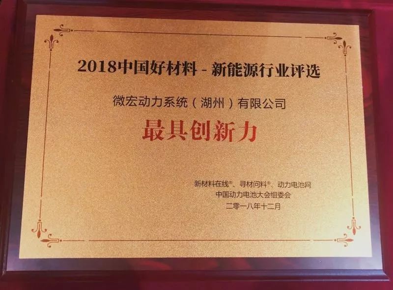 会议期间,微宏动力荣获组委会颁发的“2018中国好材料-新能源最具创新力奖”。该奖项是通过新能源行业大数据及新闻资讯,结合百余位行业专家评审意见及新能源行业各界专业用户支持,前后历经数月评选得来。