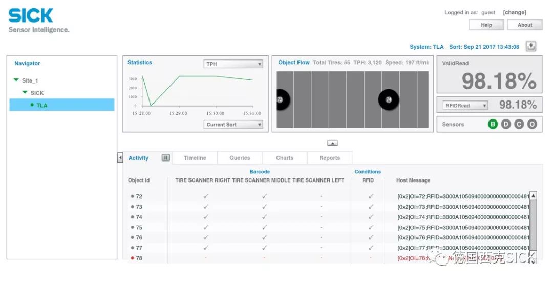 高附加值的Tire Analytics软件可对读码率进行实时统计和分析,并监控系统运行状态。同时,可通过访问相机拍摄的图片记录,分析读取失败原因并追溯。