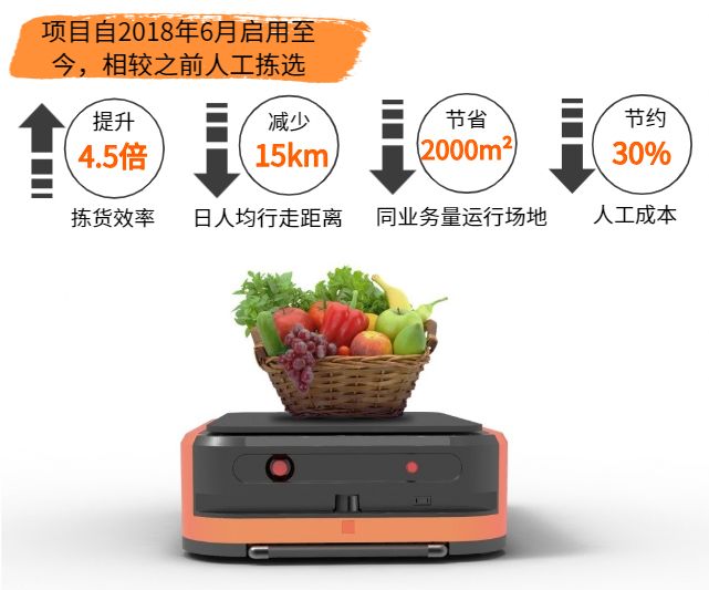 联华华商绍兴和勾庄智能仓项目的落地,是机器人科技与商超行业深度融合的体现,操作人员的活动范围从整个库区缩小到1个点,大幅提升拣货出库效率,同时降低了劳动强度和人力成本。