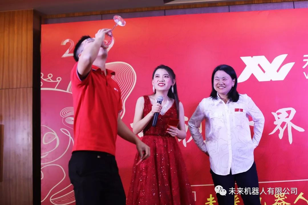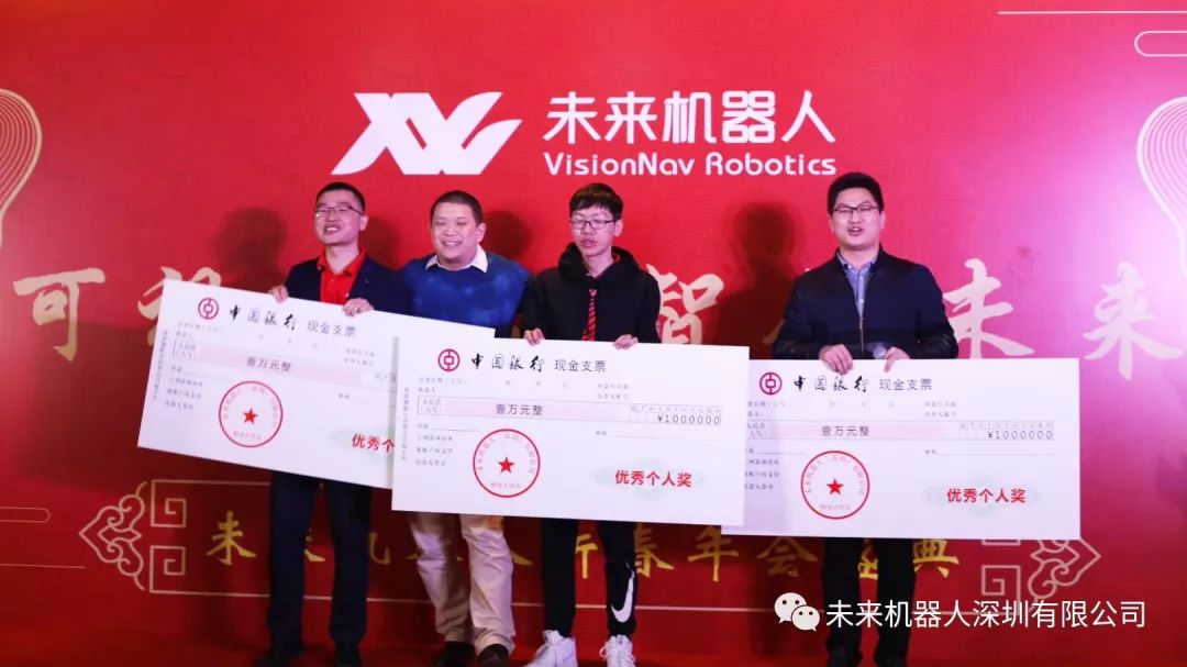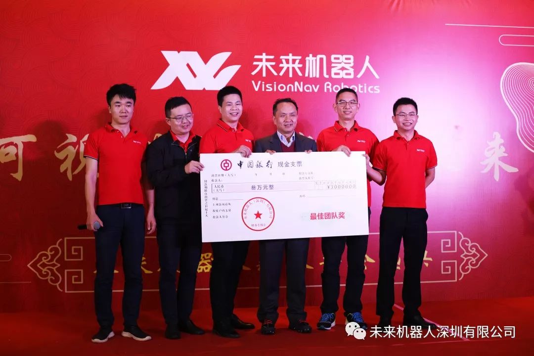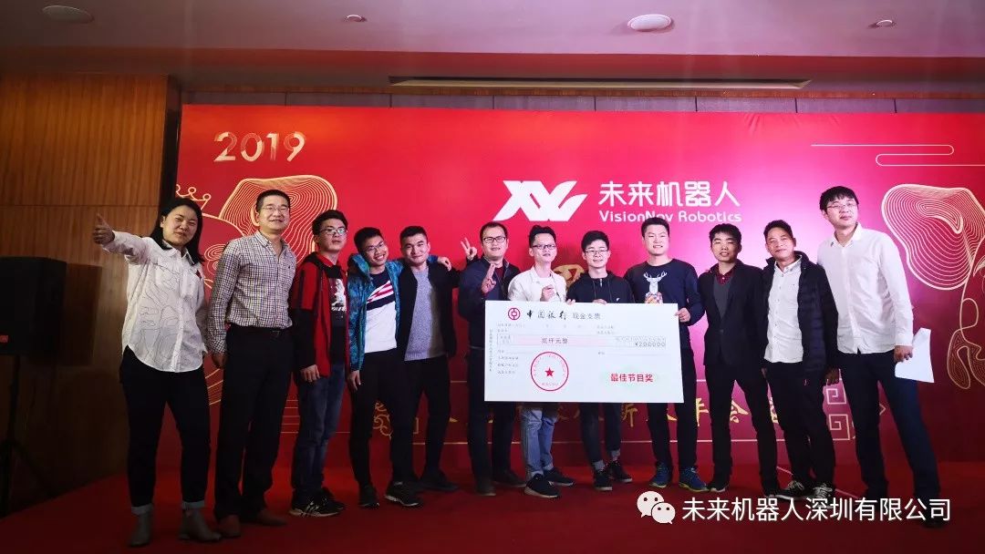 为表彰对公司有突出贡献的个人和集体,未来机器人创始团队评出最佳团队奖1个和优秀个人奖3个;同时设置幸运抽奖环节,送出多个不同级别的奖励,最后针对年会节目表演选出最佳节目奖并送上奖励。