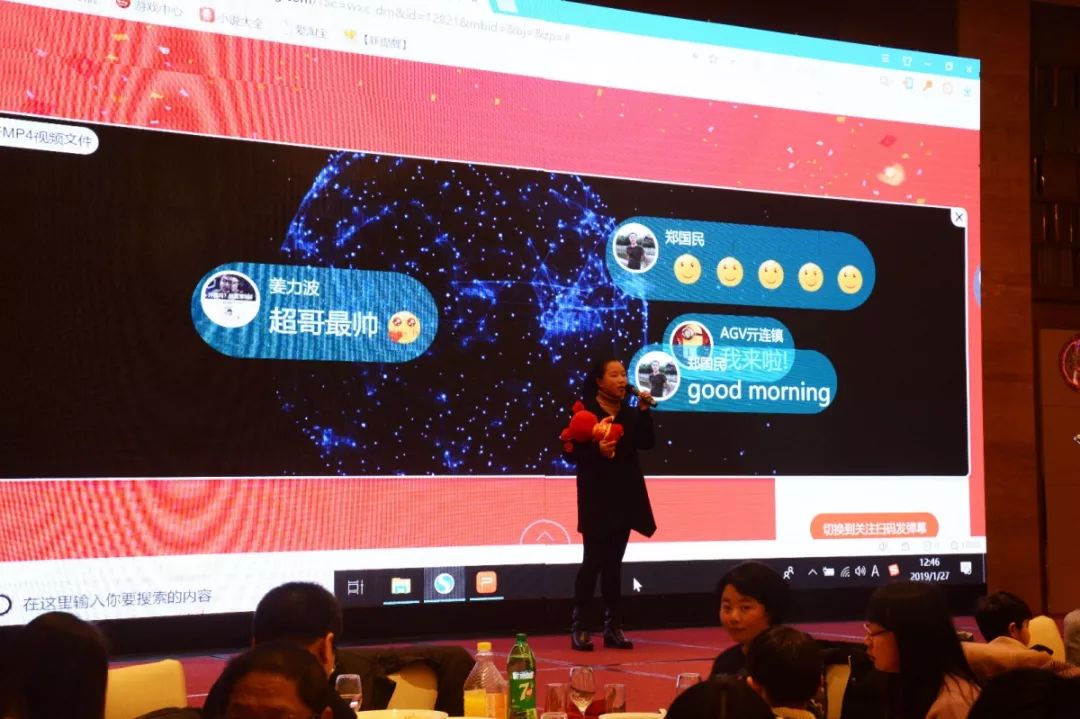 惊艳炫酷的快闪音乐《真心英雄》和主持人热情高昂的开场白,为本次年会拉开了序幕。在充满着激情、热烈的掌声中,艾吉威总经理刘胜明先生登台致辞,对全体员工、股东、客户、合作伙伴表示感谢,这一年来是大家的共同努力铸就了艾吉威熠熠生辉的今天,把掌声送给我们自己。同时现场大屏幕上播放出艾吉威青岛赛轮项目纪录片《中国智能AGV开启智慧物流新时代》触动我们在座每一位的心。