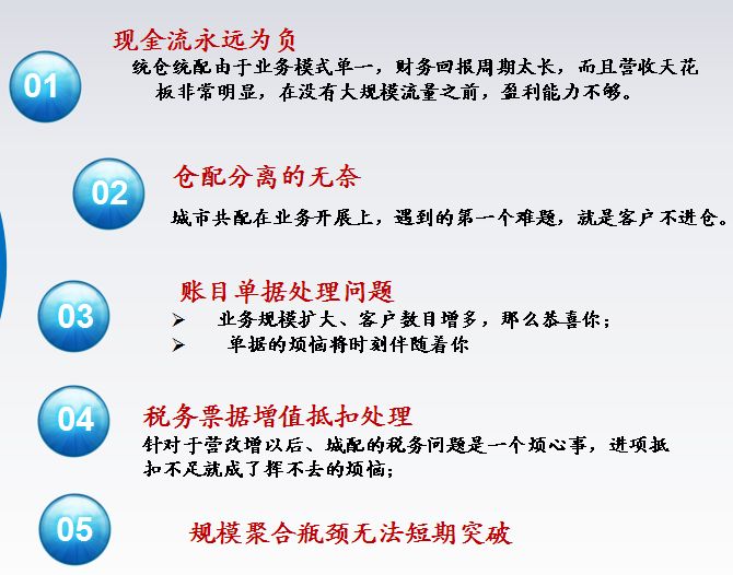 城配已经喊了很长时间,没有成长出独角兽企业必定有它的缺陷;如现金流、仓配的分离、行业壁垒等一系列问题,所以新经济.与信息产业对于透明化的日益完善,相信城配在未来能够成功的找到突破点!