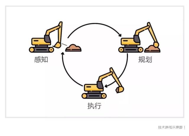 并不是远程控制的无人驾驶的挖掘机热火朝天在工地干活,而是能够真正的自主判断挖坑还是拉平土坡的挖掘机。世界上首台基于视觉技术构成的低成本、可量产解决方案的工程装备,具备多目感知与强化学习能力诞生在互联网公司的产品展台上。
