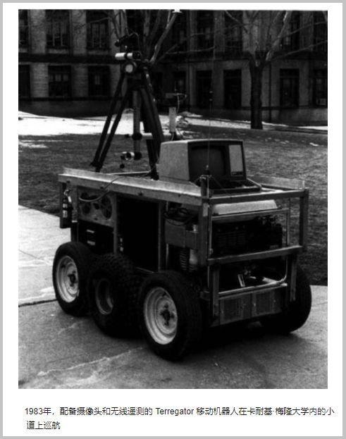 1983年,名叫Terregator 室外自动驾驶机器人,配备摄像头和无线遥测技术,在卡耐基·梅隆大学内的小道上悠闲巡航。