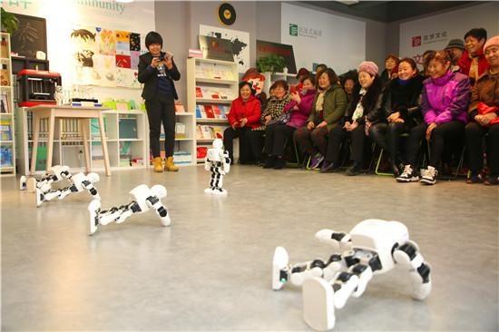 2月18日,城北区马坊街道办事处新村社区举办了机器人欢喜庆元宵主题活动,特邀请6个机器人闪亮登场,成为与观众共同展开一番元宵体验传统之旅的可爱伙伴。“给大家跳一支舞,祝大家元宵节快乐!”新村社区主任洪花云用手机操作5台阿尔法型机器人给群众表演“卖汤圆”“小苹果”等舞蹈,这台阿尔法机器人像是听懂了洪花云的指令一般,手舞足蹈尽兴表演,带给观众无穷的乐趣。随后最小的“悟空”机器人还单独为大家表演了“恭喜”舞蹈,边唱歌,边跳舞,把活动现场气氛推到了高潮,让群众兴奋了起来。