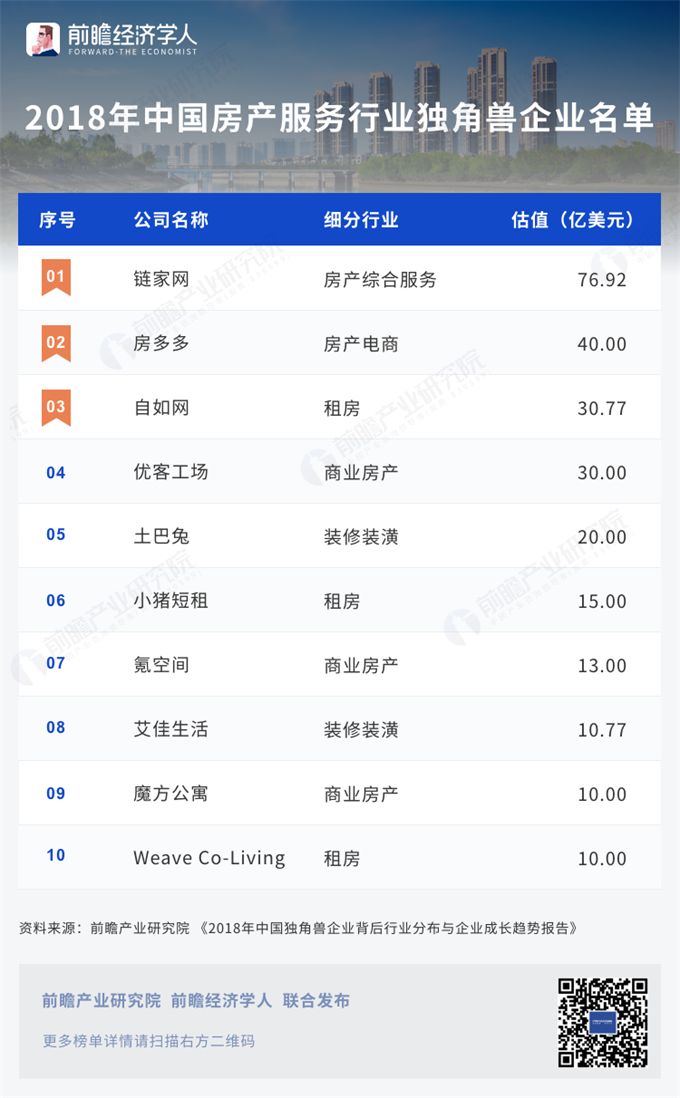 北京房产服务行业独角兽企业体量较大,在10家房产服务独角兽企业中,北京企业占8家,合计估值规模达196.46亿美元,占房产服务独角兽企业总体估值的比重达77%。