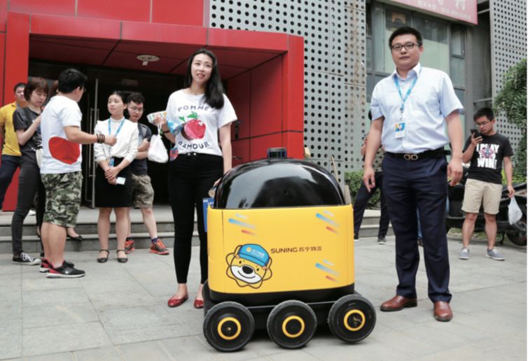 2018年6月16日,苏宁物流无人配送车“卧龙一号”正式落地北京