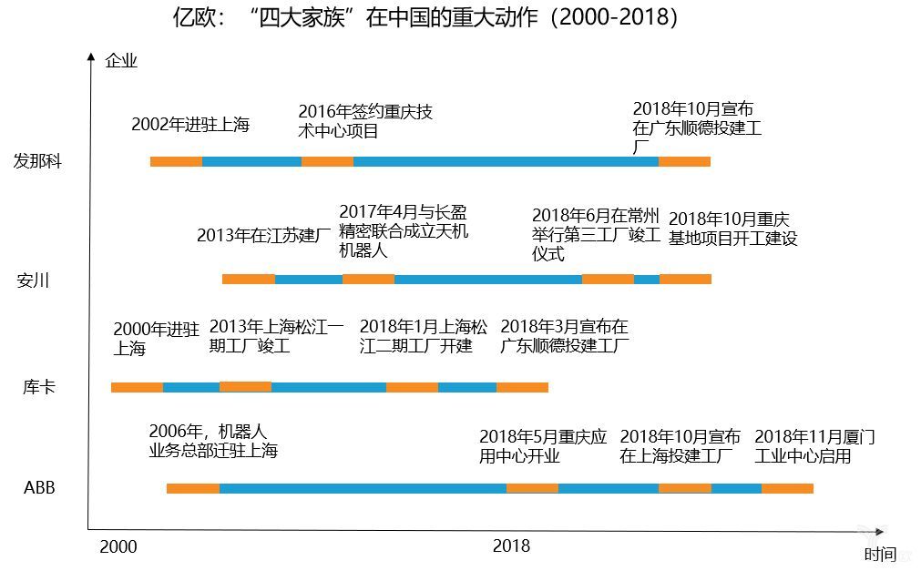 瑞士ABB、日本发那科、日本安川、德国库卡并称为机器人领域的“四大家族”,这些巨头占据了中国机器人产业70%以上的市场份额,并且几乎垄断了机器人制造、焊接等高端领域。
