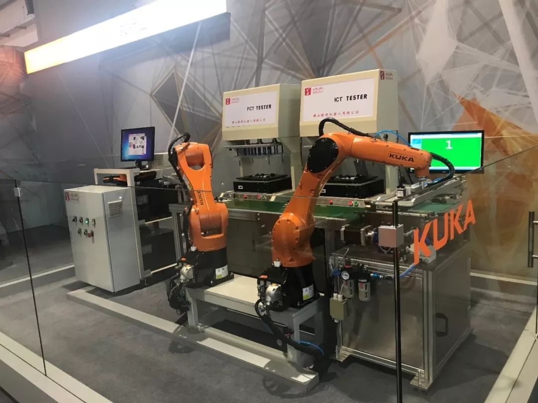 该电路板自动化测试工作站集成了ICT测试机及 KR 6 R900 型号的六轴机器人,可应用于PCBA的自动化测试,帮助客户提高生产效率,降低人工成本。