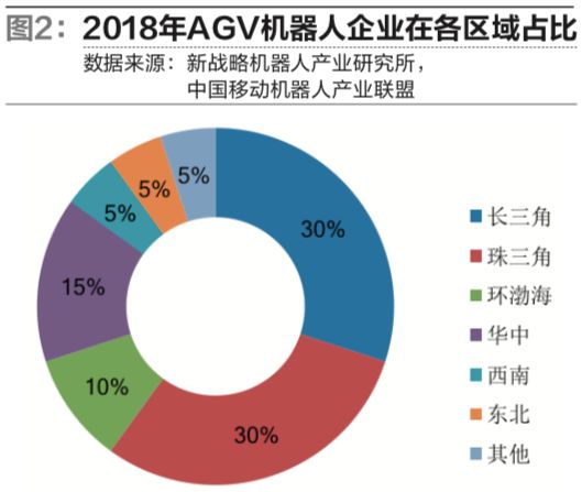 珠三角和长三角仍然是AGV的主要聚集地,由此可见,AGV的区域市场集中度近于垄断状态,AGV区域集中度逐渐提高。综合来看,广东、江苏、上海、浙江等区域未来可能是中国AGV行业重点发展区域。