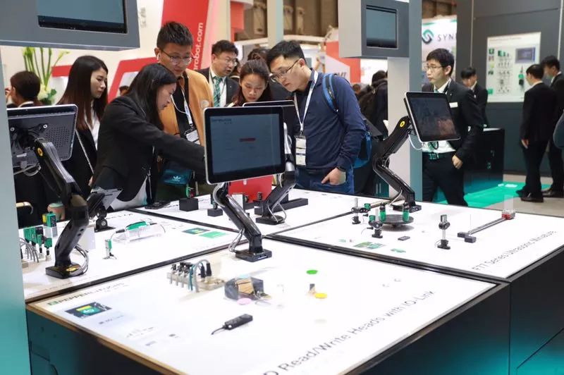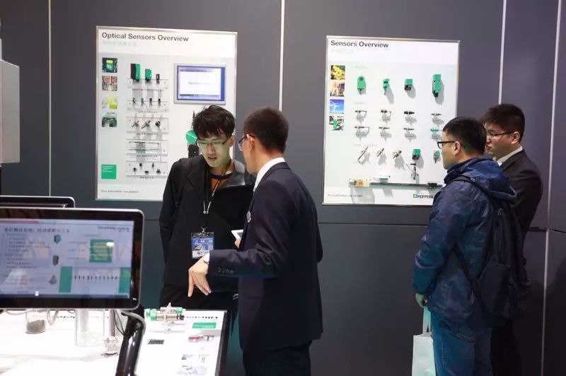 展台的另一侧,是倍加福为电子展专设的电子行业解决方案区,多种用于电子行业应用的检测都在此展示,包括料位检测、卷径检测、输送带有无检测……