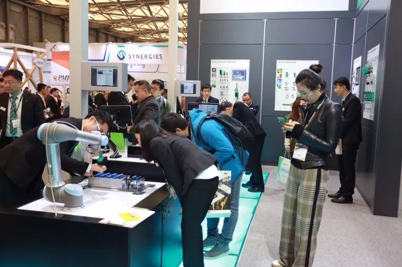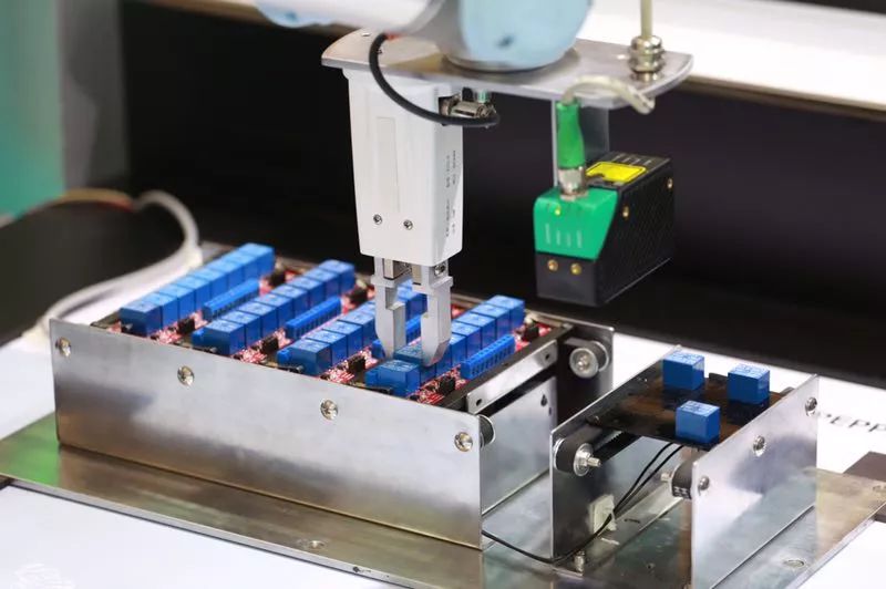 电子展现场,倍加福迎来了新成员——安装有SmartRunner传感器的UR机器手臂。结合了线性光列阵测量技术和2D视觉的SmartRunner,可实现高精度检测的应用要求,展现了电子行业中产线中PCB板继电器有无的稳定检测。