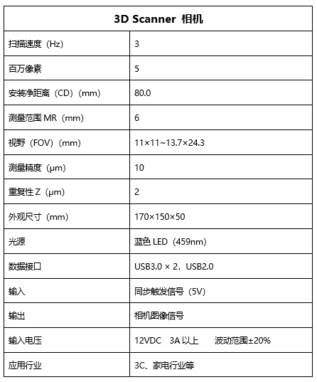 传感器搭载500万像素成像芯片,通过一次扫描即可实现对不同特征物体高精度、全视野的三维测量。
