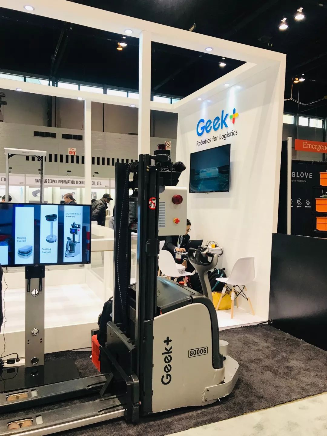 Geek+在本届ProMAT上展示了无人叉车、SLAM搬运机器人以及首次面世的货箱到人方案。不断丰富的产品线,使得Geek+在物流及供应链行业中覆盖更加广泛的应用场景及流程运作,通过AI、机器人技术赋能供应链,打造自动化柔性机器人整体解决方案。
