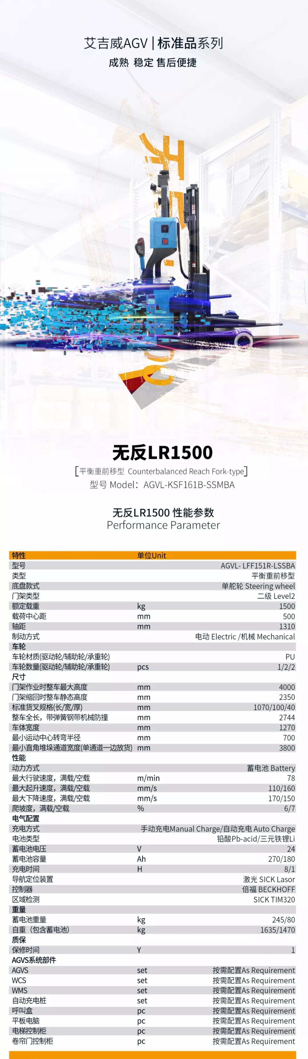 无反LR1500,无反光板激光导航前移式叉车AGV代号,其中