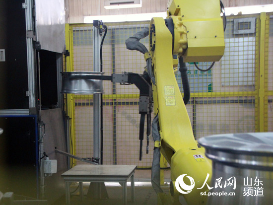 流水线上,一台台黄色的机器人操作精准快速,把一个个汽车轮毂送往下一道工序。(摄影 宋翠)