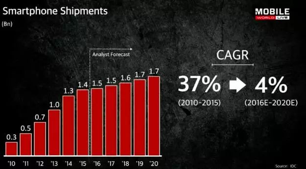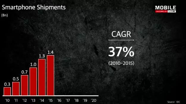 过去5年,智能手机的复合年均增长率(CAGR)为37%。