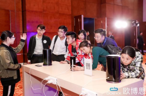 据悉,AI BOX是欧博思研发的一款智能虚拟机器人,其搭载自主研发的视觉、语音及动作合成系统,可通过对象捕捉、人脸识别、生物模仿等方式将自然语言转化为AI语言,让产品具备更强的表现力及学习能力。最显著的特点,就是赋予了智能语音新的“生命”,为家庭智能娱乐带来最贴心的智能伙伴——“小欧”。在开机状态下,只需说出“小欧 小欧”便可唤醒它,这时“小欧”会自动进入自然沟通的状态。而作为AI BOX智能虚拟机器人形象,在发布会上,“小欧”也以3D全息效果“现身”。