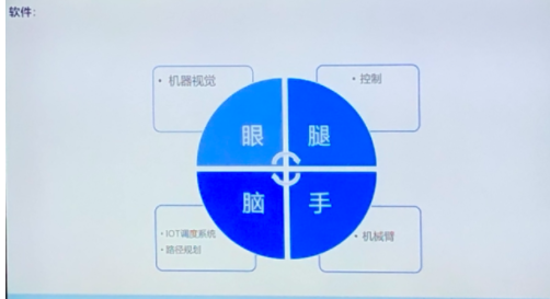 齐欧介绍,整体的技术分布分为四部分,一部分是对所有传感器的能力的掌握,包括惯导,包括单目摄像头,多目摄像头,深度摄像头等。第二部分是,利用这些传感器收集的信息,一方面是做神经网络的这些测算,一方面做环境的VSLAM,就是视觉的环境建图和视觉的机器人定位,让机器人知道环境是怎么样,知道自己在哪里,然后做路径决策和底盘控制。第三部分,决策,包括本机的和云端的。第四部分,驱动底盘有很多种,叉车的底盘是三轮的,行李箱是差速的,灵动科技可以做多底盘的控制。