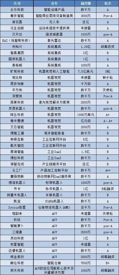 资本作为一个风向标,从今年获得融资企业来看,AGV、机器视觉、工业互联网或将是工业机器人未来风口。