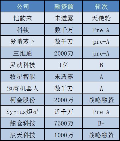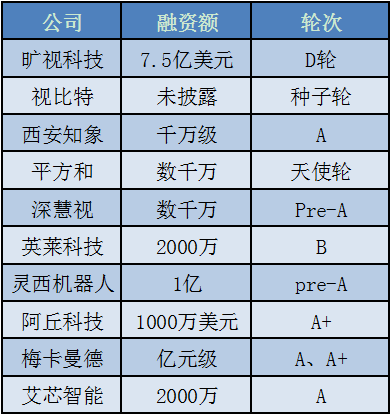 在亿元级别的融资上还有视觉分拣方案的梅卡曼德,其于4月完成亿元级A和A+轮融资。此外,成立于去年8月的3D视觉企业视比特在今年斩获种子轮融资,并于7月份再次获得来自图灵资本领投的天使轮融资。
