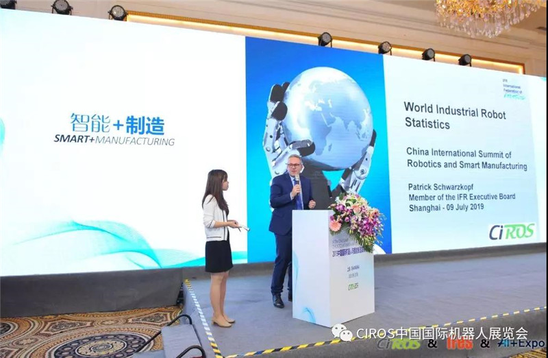 此文是根据IFR国际机器人联合会执行理事会理事Patrick Schwarzkopf先生,在CIROS组委会主办的2019中国国际机器人与智能制造发展高峰论坛暨2019“金手指奖”颁奖典礼上的演讲,按照速记报告整理摘编而成。