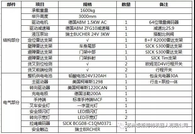 产品主要部件选用行业领先的产品驱动电机采用德国AB+M原装进口的舵轮总成、搭配美国Curtis原装进口的行走泵控一体式驱动器,高度测量采用德国SICK原装进口的拉绳编码器。考虑到AGV的应用环境的特点,产品在货叉中间留有激光雷达的安装位置,可以在承载方向安装一个SICK S300安全雷达。由于在工作时候,滑架需要频繁起升下降,并且作为油压机械,维护保养的时候不可避免接触到油污,机型选用德国ESCHA和LEONI的PUR线材。