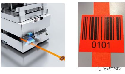 SICK荧光导航传感器OLS系列除了提供以上荧光色带的导航方式,还能读取条码。通过条码内容获取小车位置信息或控制指令。该条码也由SICK以荧光颜料制成,如以上荧光特性带来的优势,比传统惯性导航印刷的条码/二维码更具耐环境能力。
