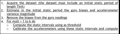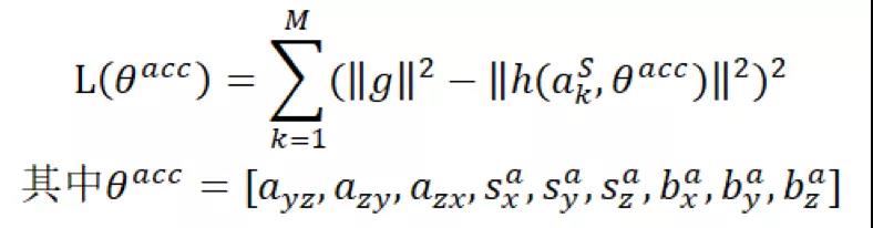 从流程图中可以看出, 从初始的静止状态得到陀螺仪的bias值,然后先标定加速度计. 加速度计的error function为: