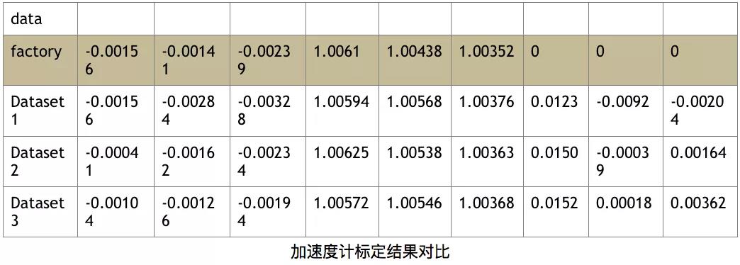 由于小觅的出厂标定没有设置初始bias, 因此我们认为都是0, 实际上在采集数据的计算结果中也可以看到标定出的bias值都非常小. 从上面两个表可以看出不同dataset的标定结果基本接近, 与小觅的出厂标定数据也基本一致.