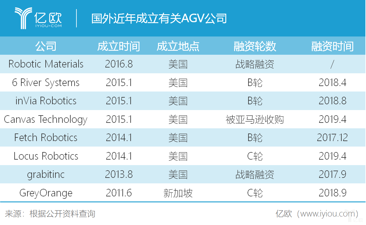 国外近年成立有关AGV公司