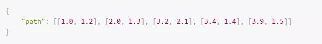 如上的路径由 5 个点组成,5 个点分别为 (1.0, 1.2), (2.0, 1.3), (3.2, 2.1), (3.4, 1.4), (3.9, 1.5), 其坐标值为在世界坐标系中的坐标, 将这 5 个点按顺序连接即为机器人当前规划的路径。