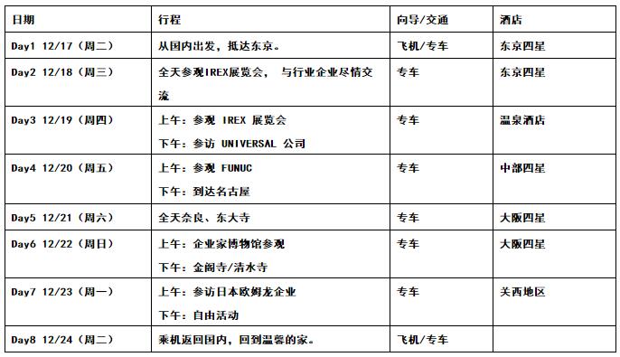 行 程:观展+定制讲座+中日企业技术交流会+先进日企工厂实地参观