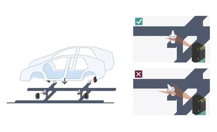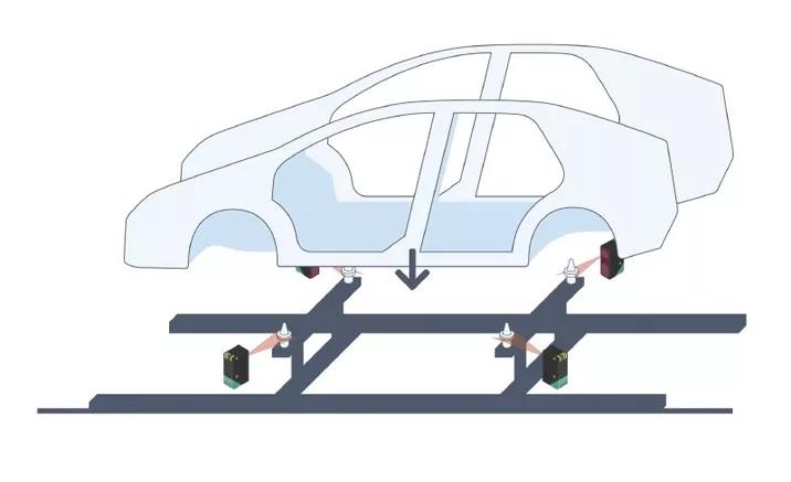 滑撬螺栓的位置和对齐方面必须都在指定范围内时,当车身下降的时候,车身锚孔才能刚好落在滑撬螺栓上。为了确保车身能正好落在滑撬上,滑撬螺栓的位置和对齐必须由传感器技术检测判断。
