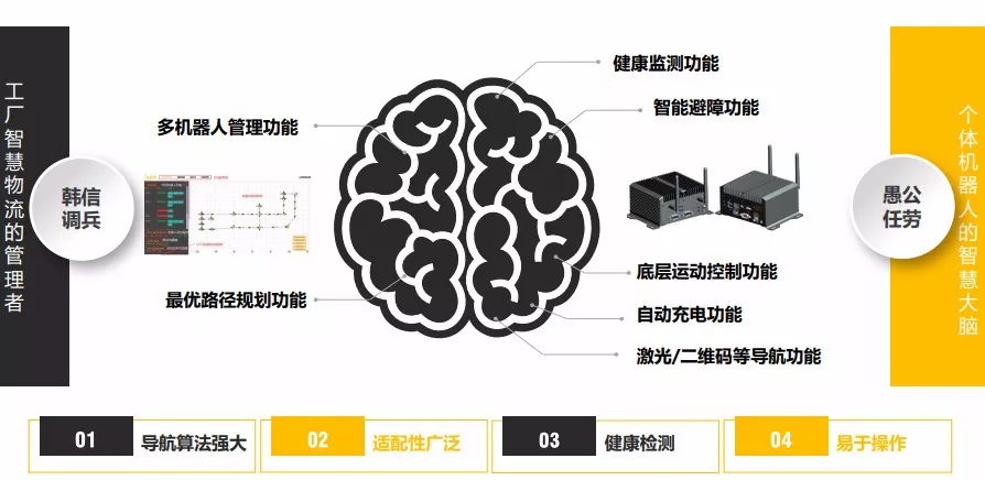 宾通智能CMO吴征杰给他们的产品都起了非常有内涵的中文名称,分别是“愚公”控制器和SLAM导航平台、“韩信”后台调度系统、“刘邦”STP排程系统。琅琅上口又一语中的。