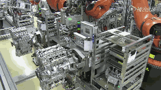 7. 检测线上,4台机器人正交错完成大型车身的测量与检测