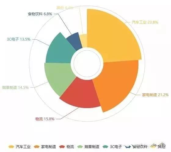 在制造行业,AGV产品早已为大型制造型企业所青睐,尤以汽车产业链的AGV产品方案应用最为明显,从部分AGV企业行业市场占有率统计,AGV产品的系统应用超过90%以上都是应用于汽车产业链,AGV机器人能很好的适应现代化汽车制造技术柔性化、灵捷化、智能化、信息化的发展趋势。而近几年,“中国制造2025” 正迈向智能时代发展的新浪潮,AGV的应用向着更广泛应用范围延伸。