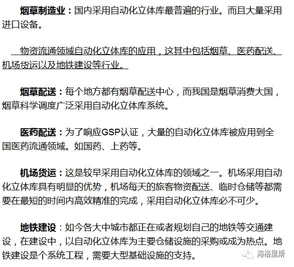 汽车制造:此行业也是国内最早应用应用自动化立体库的领域之一。中国二汽是最早应用自动化立体库的单位。目前国内主要汽车制造企业几乎无一例外的应用自动化立体库。汽车制造的精密性与系统性质也决定了需要采用这样的立体仓库系统。