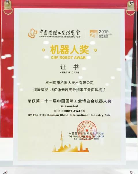 在前天揭晓的2019工博会专业奖中,海康威视1.5亿像素超高分辨率工业面阵相机从三百余家优秀企业的申报展品中突围,再获工博会肯定,荣摘第二十一届中国国际工业博览会CIIF机器人奖。