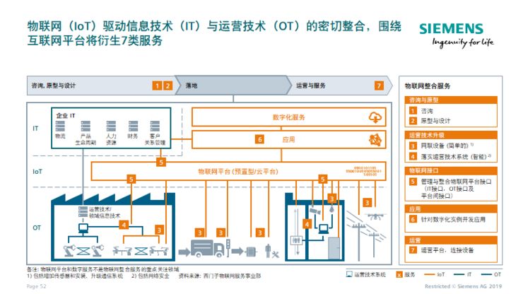 具体实施过程中,西门子对外又将其划分为七个步骤,包括:战略咨询、原型制作和设计、设备连接、落实运营技术系统、管理和整合物联网平台接口、针对数字化实例开发应用、运营平台和设备连接。