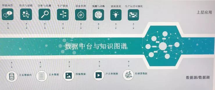 在工业环境中,数据常常以孤岛形式存在,部分数据存储在本地设备中,部分数据存储在诸如ERP、MES信息化系统中,甚至还有一部工人行为数据、设备运行过程数据散落在物理空间中,这就需要通过各类设备将这些数据采集,并通过知识图谱打通各类数据,最终存储在数据中台中,形成一套应用模型。