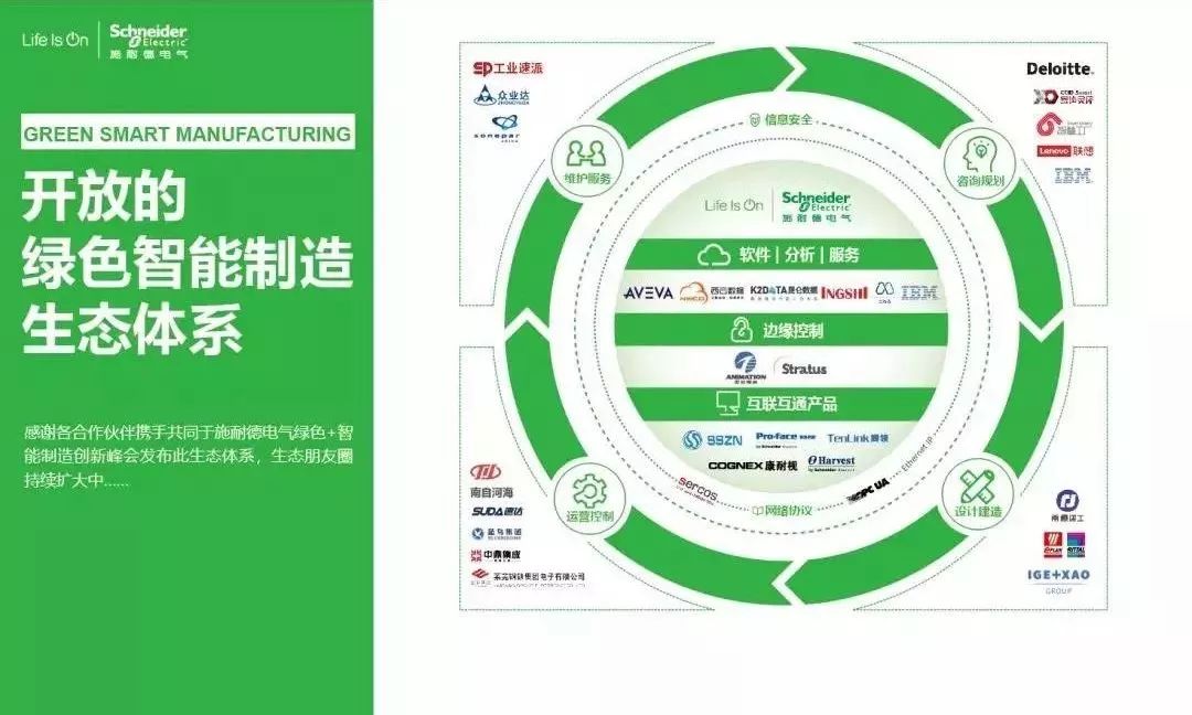 施耐德、中鼎集成、阿里研究院、IB+M、上海宝钢工业技术服务有限公司等数十家“生态圈”合作伙伴,现场共同发布开放的绿色智能制造生态体系。随着开放的绿色智能制造生态体系的建立,生态圈被赋予新的内涵:工业企业都能从绿色智能制造生态体系中融合共生,获得收益,这不仅仅是为生态圈中的企业,更是为中国工业整体水平的提升贡献力量,为社会创造更大价值。