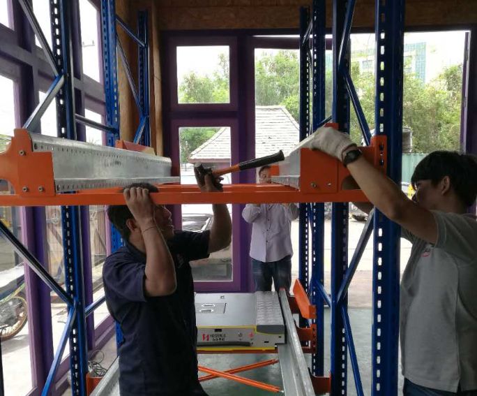 2、空间利用率方面。穿梭车货架轨道都是并排设计,可以做成很多排,且可以做到更多货位深度,比其它货架减少了叉车通道,空间利用率自然也高,普通重型货架空间利用率30%~35%,驶入式货架空间利用率60%~70%,而穿梭车货架空间利用率可达80%左右。
