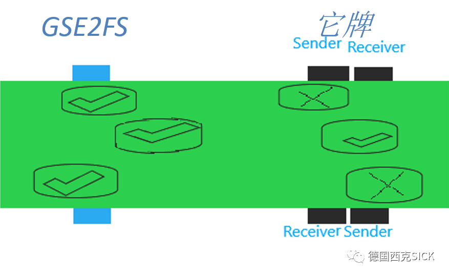 (无论是近端还是远端,我们都能仅以一对对射光电开关稳定检测薄工件,例如手机屏幕盖板,而其他品牌则需要两对)