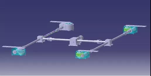 竖直方向动力源丝杆升降机,直接连接内层车身与外层车身,将负荷转移至强度最大的内层,且与麦轮邻近,将可能产生的弯矩降至最低。