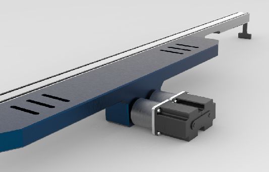 横向伸缩动力源采用步进电机驱动的齿轮齿条式滑轨,齿条部分与中间层车身固定,横向伸缩时带动中间层车身相对内层横向移动,改变小车宽度以适应不同尺寸的家用车。