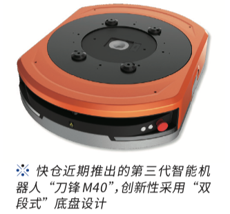 针对不断变化的市场需求,各物流机器人企业开始在多方面进行创新。例如,快仓近期推出的第三代智能机器人“刀锋M40”便在底盘设计上进行了创新,采用“双段式”底盘设计,将原本主动轮加弹簧的底盘设计方案升级为双段浮动式底盘和分置式多连杆顶升一体化设计。